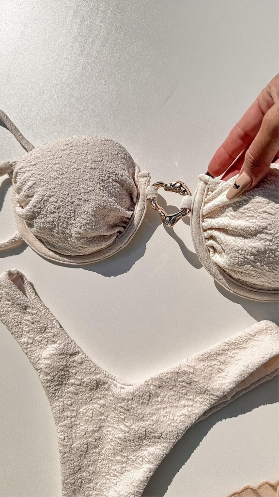 SUTIÃ ACOMPANHA BOJO REMOVÍVEL E MALEÁVEL, REGULAGEM NAS ALÇAS E AVIAMENTO CENTRAL BANHADO A OURO PRÓPRIO PARA PRAIA/PISCINA.
